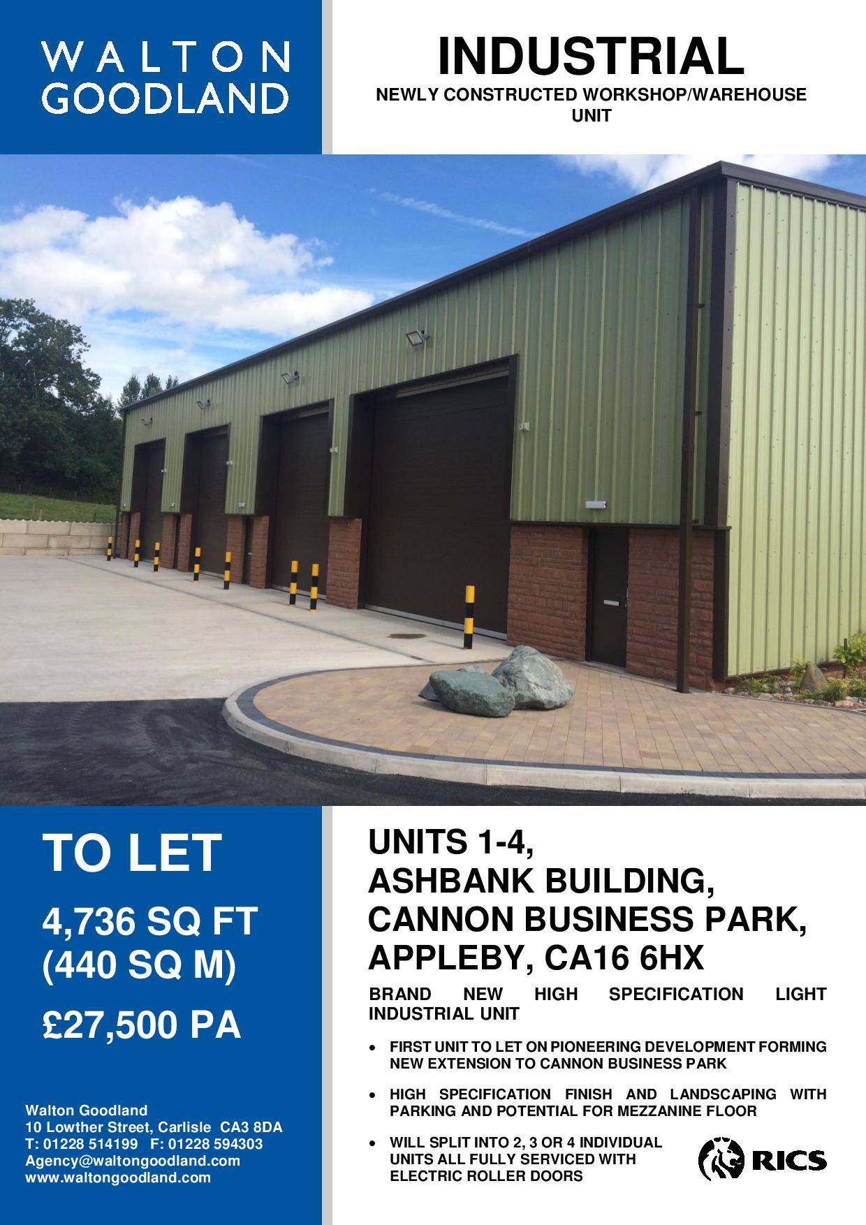 For more information or a look around contact either the office at Cannon Hire on 017683 52820 or Stephen Sewell at Walton Goodland on 01228 514199